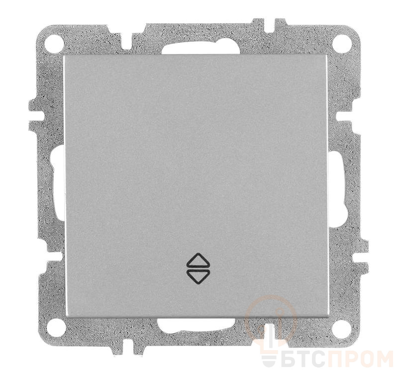 Механизм выполнен в классическом исполнении с серебристой рамкой (цвет 50) и белой клавишей (03), что позволяет ему гармонично вписаться в большинство интерьеров. Номинальные характеристики: 10А, 250В. Устройство обеспечивает надежное и долговечное переключение, а его конструкция разработана для простого и быстрого монтажа в стандартную монтажную коробку.