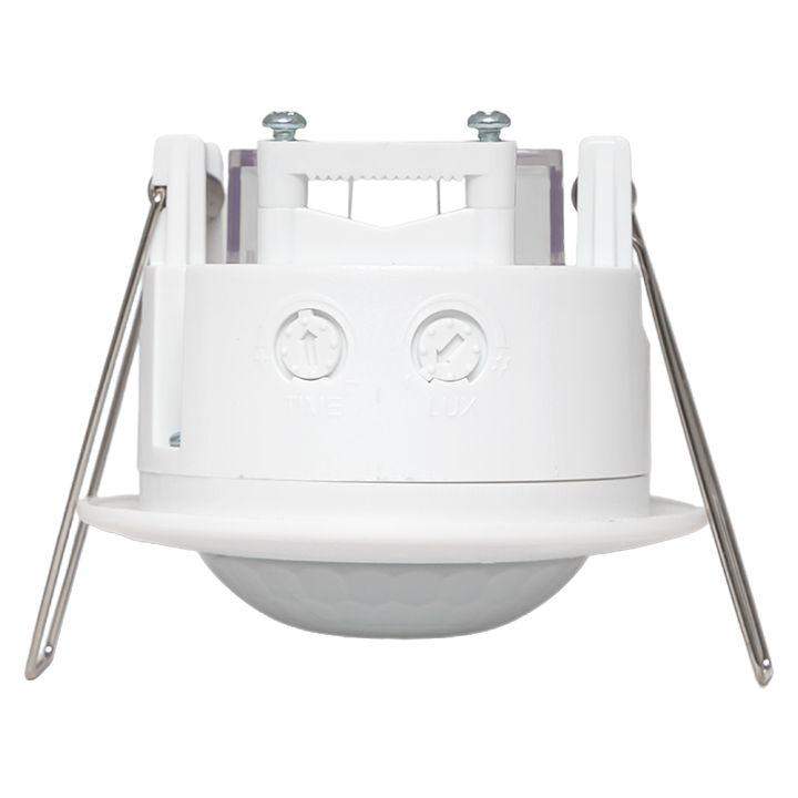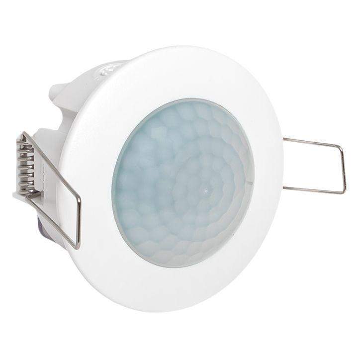 Датчик движения инфракрасный MS-100 предназначен для экономии электроэнергии за счет автоматического управления освещением и другими инженерными системами. Датчик реагирует на движение людей и других объектов в зоне действия сенсора, принцип работы датчика основан на отслеживании уровня ИК-излучения в поле зрения. Датчик MS-100 предназначен для встраивания в подвесные потолки. Рекомендуется использовать датчик в кладовках, гардеробных и других помещениях с временным пребыванием людей. Алгоритм работы: при возникновении движения в поле зрения датчика встроенное электромеханическое реле (рассчитано на полную мощность 1200Вт) коммутирует подключенную нагрузку. После этого нагрузка находится под напряжением в течение заданного времени (от 10 сек. до 7 минут, время настраивается) и выключается. Дополнительно датчик имеет функцию контроля освещенности. Если освещенность в зоне детекции выше заданного уровня (настраивается), то нагрузка включаться не будет, что позволяет дополнительно экономить электроэнегию днем.