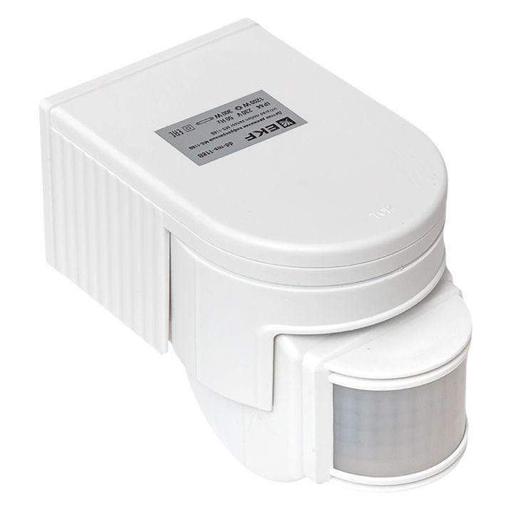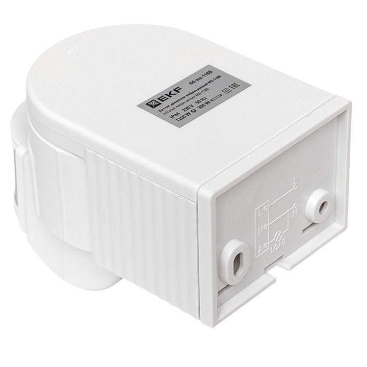 Датчик движения инфракрасный MS-118B предназначен для экономии электроэнергии за счет автоматического управления освещением и другими инженерными системами. Датчик реагирует на движение людей и других объектов в зоне действия сенсора, принцип работы датчика основан на отслеживании уровня ИК-излучения в поле зрения. Датчик MS-11Cb предназначен для установки на стену накладным способом. Сенсор датчика имеет регулируемый в 2ух плоскостях поворотный механизм, что позволяет нацелить его на необходумую зону. Рекомендуется использовать датчик в корридорах, подъездах, различных проходных зонах. Возможно использование на улице под навесом. Алгоритм работы: при возникновении движения в поле зрения датчика встроенное электромеханическое реле (рассчитано на полную мощность 1200Вт) коммутирует подключенную нагрузку. После этого нагрузка находится под напряжением в течение заданного времени (от 10 сек. до 7 минут, время настраивается) и выключается. Дополнительно датчик имеет функцию контроля освещенности.