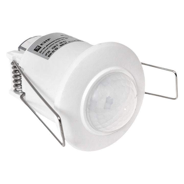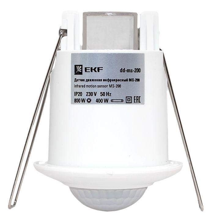 Датчик движения инфракрасный MS-200 предназначен для экономии электроэнергии за счет автоматического управления освещением и другими инженерными системами. Датчик реагирует на движение людей и других объектов в зоне действия сенсора, принцип работы датчика основан на отслеживании уровня ИК-излучения в поле зрения. Датчик MS-200 предназначен для встраивания в подвесные потолки. Рекомендуется использовать датчик в кладовках, гардеробных и других помещениях с временным пребыванием людей. Алгоритм работы: при возникновении движения в поле зрения датчика встроенное электромеханическое реле (рассчитано на полную мощность 500Вт) коммутирует подключенную нагрузку. После этого нагрузка находится под напряжением в течение заданного времени (от 10 сек. до 7 минут, время настраивается) и выключается. Дополнительно датчик имеет функцию контроля освещенности. Если освещенность в зоне детекции выше заданного уровня (настраивается), то нагрузка включаться не будет, что позволяет дополнительно эклектроэнергию днем.
