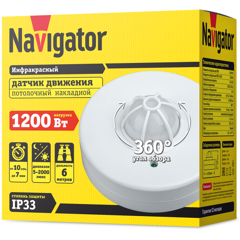 Датчик движения инфракрасный 71 963 NS-IRM02-WH Navigator 71963 фото в каталоге от BTSprom.by
