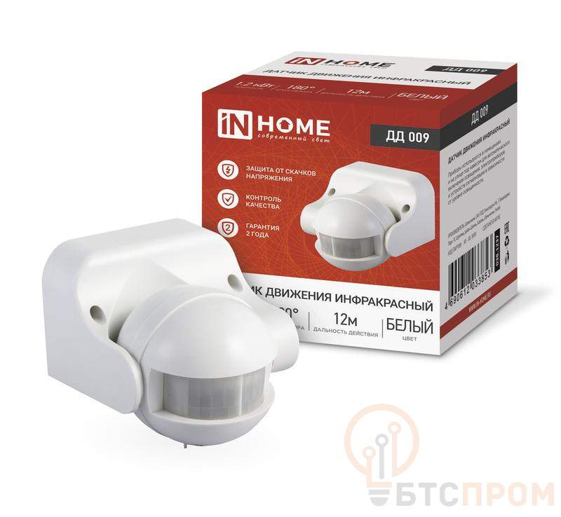Датчик движения инфракрасный ДД 009 1200Вт 180г 12м IP44 бел. IN HOME 4690612033853