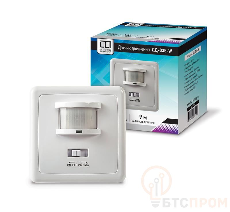 Датчик движения инфракрасный ДД-035-W оптико-акустический 500Вт 160град. 9м IP20 бел. LLT 4690612001920