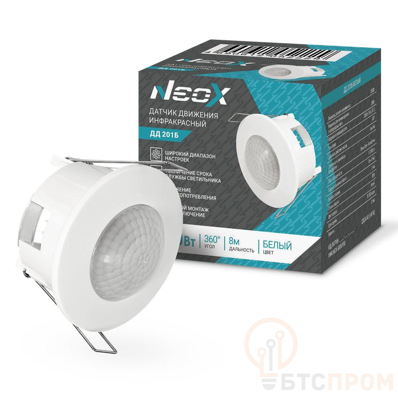 Датчик движения инфракрасный встраиваемый ДД 201 1200Вт 360град. 6м IP20 бел. NEOX 4690612052229 фото в каталоге от BTSprom.by