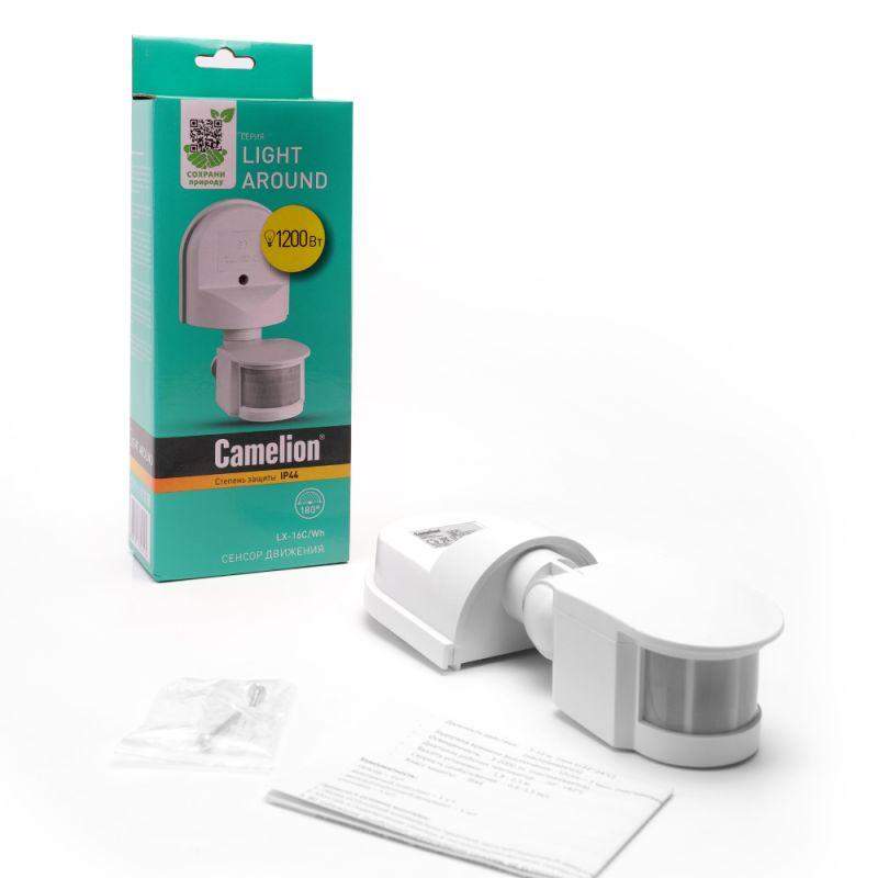 Сенсор предназначен для управления освещением и экономного использования электроэнергии при освещении. Сенсор автоматически включает свет при появлении в зоне его действия движущихся тепловых объектов (человек), а также автоматически выключает его через определенное время (согласно настройкам) при отсутствии движения объектов в зоне контроля. Camelion LX-16C/Wh, Белый (Электронный сенсор включения освещения, настенный, 180°), размер 215х90х50мм, мощность 1200/300Вт. Задержка 5сек.-9мин.