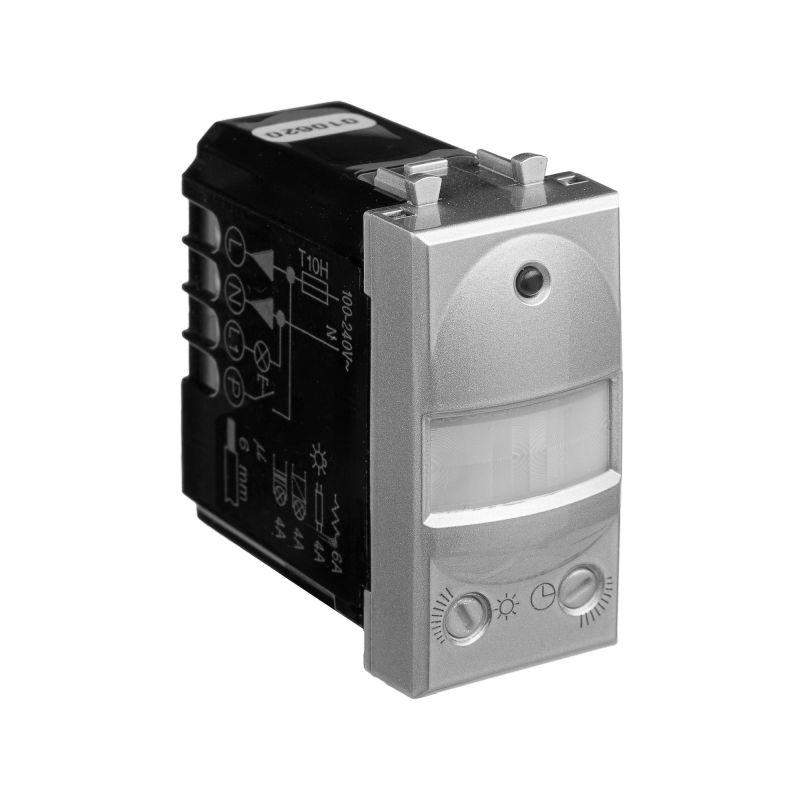 Датчик движения модульный. Назначение: для монтажа в систему кабельных коробов "In-liner Front" и систему организации рабочих мест "Sotto" при помощи рамок-суппортов и каркасов "Avanti" (код 4400912 и т.д.); автоматическое включение/выключение света. Характеристики: диаметр отверстий для ввода кабелей – 3 мм; винтовые зажимы; шаблон для зачистки кабеля – 11 мм; расстояние обнаружения – от 2 до 12 м угол охвата – 150°; время задержки отключения (от 10 с до 7 мин.); настройка светочувствительности датчика; настройка порога освещенности; фиксация в подрозеточные коробки глубиной не менее 45 мм при помощи каркаса с лапками (код 4400802) и саморезов. Кол-во модулей: 1. Цвет: "Закаленная сталь" Производитель оставляет за собой право вносить во внешний вид изделия изменения, которые не влияют на его функционал, безопасность и надежность.