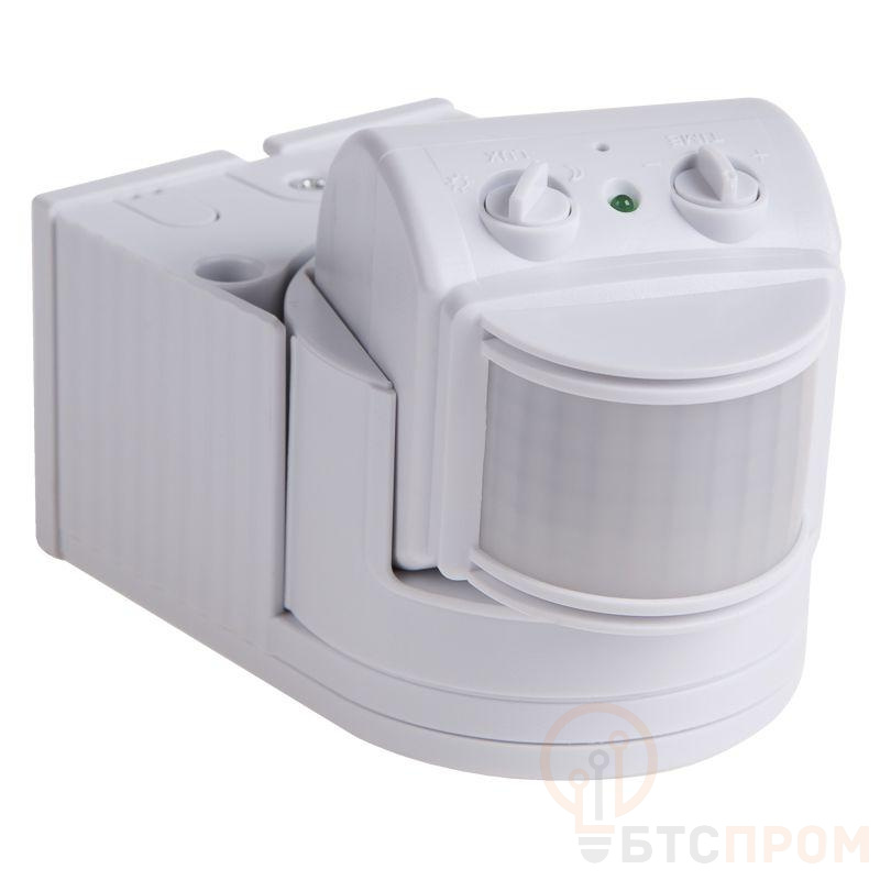 Датчики предназначены для автоматического включения и выключения нагрузки в заданном интервале времени, в зависимости от наличия движущихся объектов в зоне обнаружения датчика и уровня освещенности. Принцип работы инфракрасных датчиков движения заключается в обнаружении изменений инфракрасного (теплового) излучения окружающих объектов. Каждый объект, имеющий температуру, испускает инфракрасное излучение, которое через систему линз или специальных вогнутых сегментированных зеркал попадает на расположенный внутри датчика движения чувствительный сенсор, регистрирующий это. Датчик движения настенный является одним из наиболее популярных типов датчиков движения, устанавливается на стену, угол обзора 180°. Данный датчик имеет степень пыле- и влагозащиты IP44. Угол обзора: 180° Напряжение: 230 В Мощность: 1200 Вт Порог освещенности: 3-2000 Лк Дальность: до 12 м Выдержка включения: 10-420 сек Степень защиты: IP44 Диапазон рабочих температур: –25...+40 °С