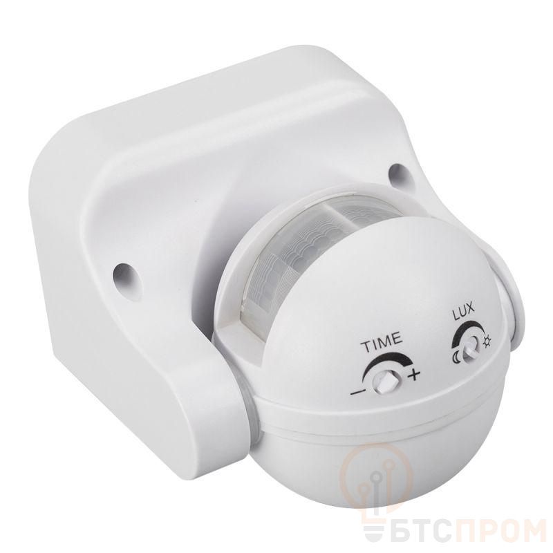 Инфракрасный датчик движения, совмещенный с датчиком освещенности. Предназначен для установки на стену или потолок. Настройки: время отключения (5 c – 5 мин), зона срабатывания (до 12 м), освещенность (5 - 2000 люкс). Максимальная нагрузка 1200 Вт (для ламп накал-я и галогенных), 300 Вт (для светодиодных и люминесцентных ламп), размеры (OxH) - 93.4х79.8 мм.