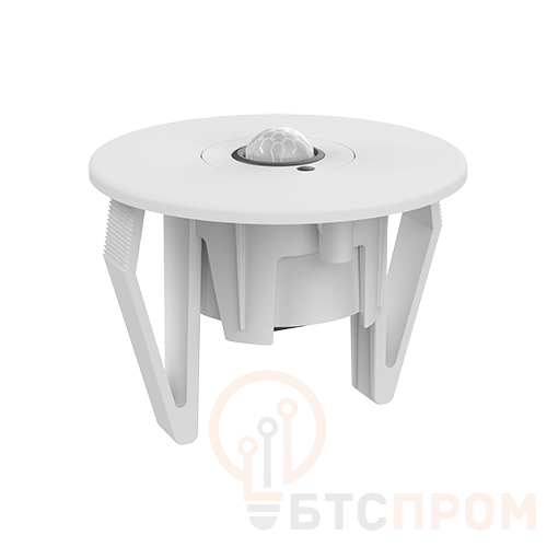 Инфракрасный датчик движения и освещённости для установки в невысоких помещениях в подвесной потолок. Высота установки 2.7м. Зона обнаружения максимальным диаметром до 5м. Не предназначены для работы в помещениях с отрицательной температурой.