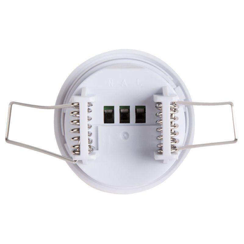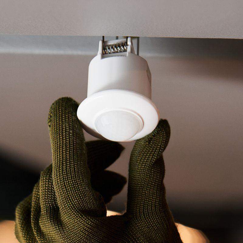 Датчики предназначены для автоматического включения и выключения нагрузки в заданном интервале времени, в зависимости от наличия движущихся объектов в зоне обнаружения датчика и уровня освещенности. Принцип работы инфракрасных датчиков движения заключается в обнаружении изменений инфракрасного (теплового) излучения окружающих объектов. Каждый объект, имеющий температуру, испускает инфракрасное излучение, которое через систему линз или специальных вогнутых сегментированных зеркал попадает на расположенный внутри датчика движения чувствительный сенсор, регистрирующий это. Встраивается в подвесной потолок с диаметром установочного отверстия 40 мм. Визуально датчик гармонично встраивается в обстановку и не выделяется на потолке. Угол обзора: 360° Напряжение: 230 В Мощность: 800 Вт Порог освещенности: 3-2000 Лк Дальность: до 6 м Выдержка включения: 10-900 сек Диапазон рабочих температур: –25...+40 °С Степень защиты : IP20
