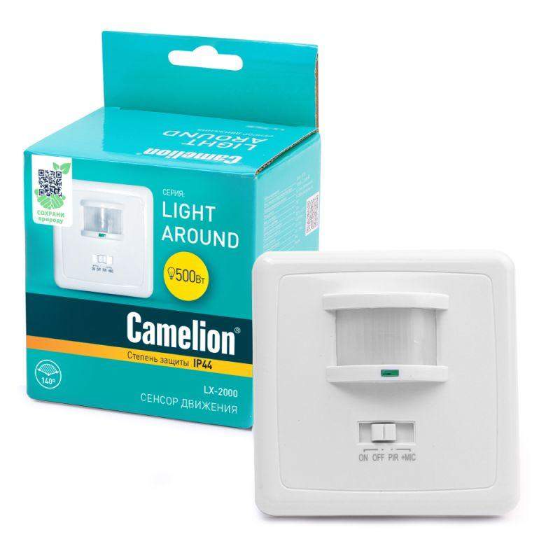 Сенсор предназначен для управления освещением и экономного использования электроэнергии при освещении. Сенсор автоматически включает свет при появлении в зоне его действия движущихся тепловых объектов (человек, домашние животные), а также автоматически выключает его через определенное время (согласно настройкам) при отсутствии движения объектов контроля. В корпус сенсора встроен датчик освещенности, который автоматически определяет смену дня и ночи (изменение освещенности). Camelion LX-2000 (Многофункциональный электронный сенсор,настенный,встраиваемый ), размер 93х93х55мм, мощность 500Вт. Задержка 5сек.-9мин.