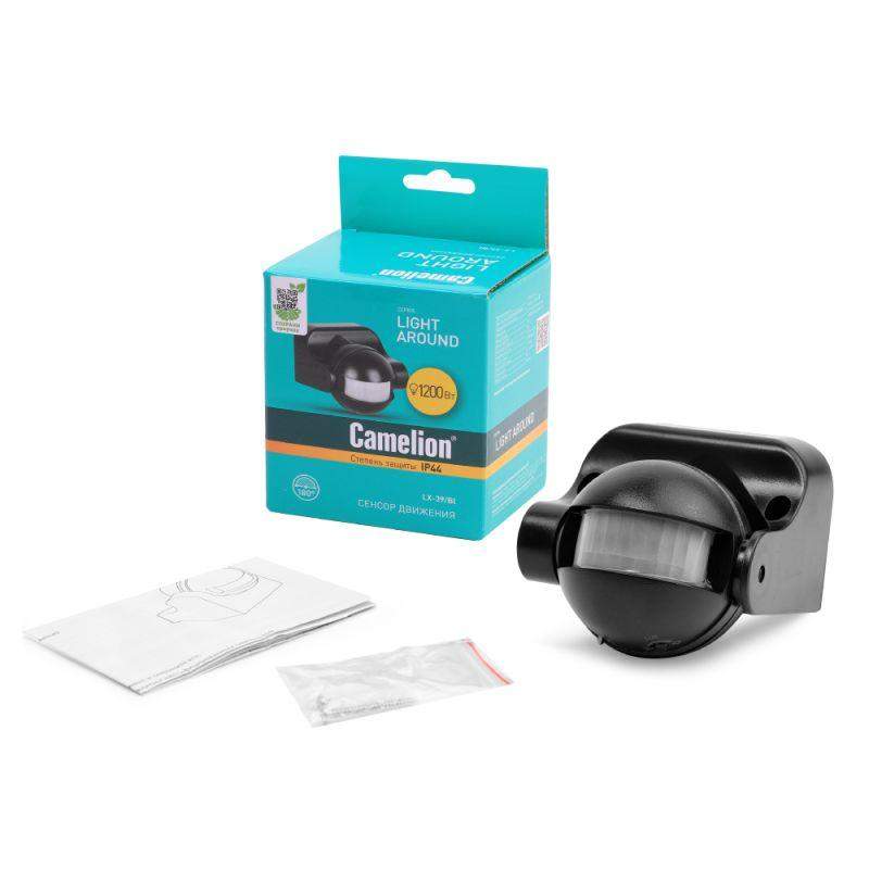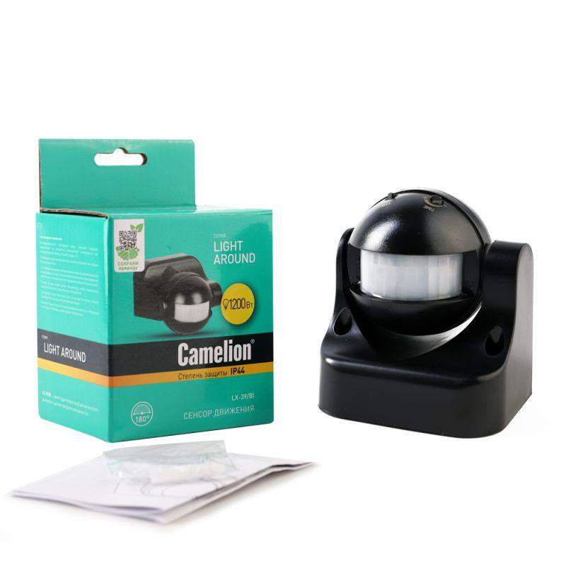 Сенсор предназначен для управления освещением и экономного использования электроэнергии при освещении. Сенсор автоматически включает свет при появлении в зоне его действия движущихся тепловых объектов (человек), а также автоматически выключает его через определенное время (согласно настройкам) при отсутствии движения объектов в зоне контроля. Camelion LX-39/Bl, Черный (Электронный сенсор включения освещения, настенный, 180° ), размер 105х90х74мм, мощность 1200/300Вт. Задержка 5сек.-9мин.