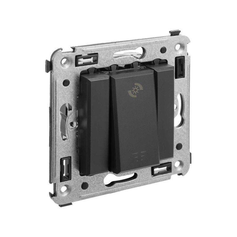 Диммер кнопочный в стену для LED ламп. Предназначен для монтажа в подрозеточные коробки глубиной не менее 45 мм (код 59301). Используется для управления освещением помещения. Регулирование 3–120 Вт для LED ламп; регулирование 3–220 Вт для ламп накаливания и галогенных ламп; диммирование по переднему и заднему фронту; выбор режима включения освещения (плавный пуск). Диаметр отверстий для ввода кабелей – 3 мм; винтовые зажимы. Фиксация производится в подрозеточную коробку при помощи саморезов; шаблон для зачистки кабеля – 11 мм. 2 модуля. Цвет: "Черный матовый". Производитель оставляет за собой право вносить во внешний вид изделия изменения, которые не влияют на его функционал, безопасность и надежность.