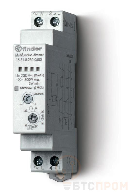 Диммер модульный электронный для люминесцентных и светодиодных ламп 500Вт плавное диммирование 230В AC 17.5мм IP20 FINDER 158182300500PAS