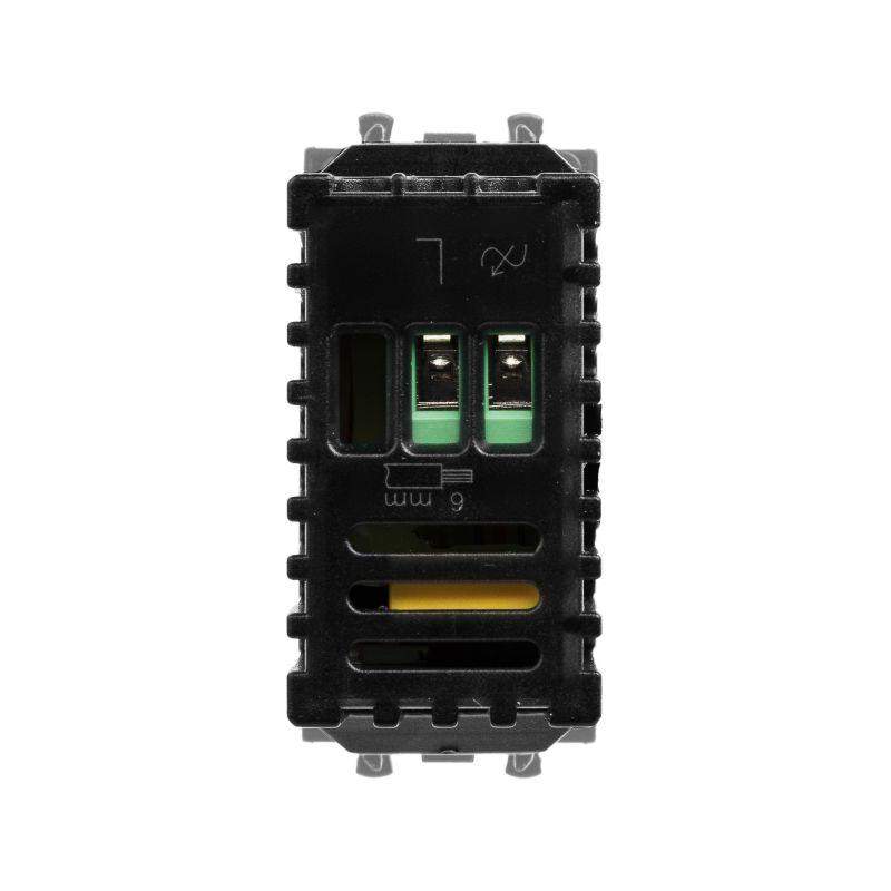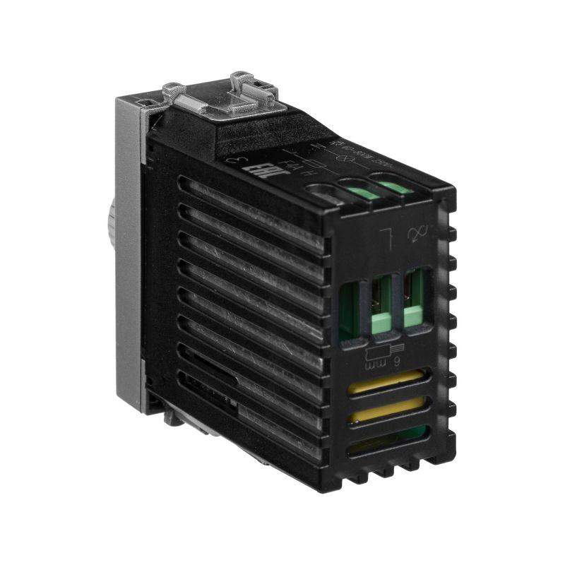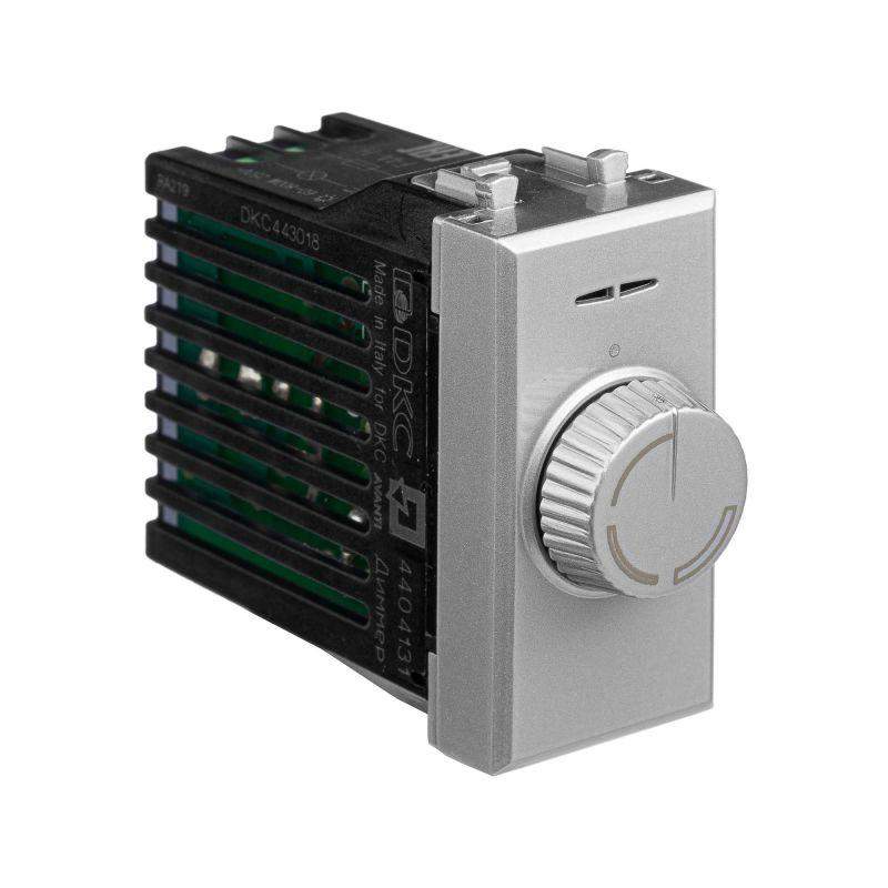 Диммер поворотный модульный. Назначение: для монтажа в систему кабельных коробов "In-liner Front" и систему организации рабочих мест "Sotto" при помощи рамок-суппортов и каркасов "Avanti" (код 4400912 и т.д.); управление освещением помещения; регулирование 60–800 Вт для ламп накаливания и галогенных ламп. Характеристики: диаметр отверстий для ввода кабелей – 3 мм; винтовые зажимы; шаблон для зачистки кабеля – 11 мм; встроенная подсветка; фиксация в подрозеточные коробки глубиной не менее 45 мм при помощи каркаса с лапками (код 4400802) и саморезов. Кол-во модулей: 1. Цвет: "Закаленная сталь" Производитель оставляет за собой право вносить во внешний вид изделия изменения, которые не влияют на его функционал, безопасность и надежность.
