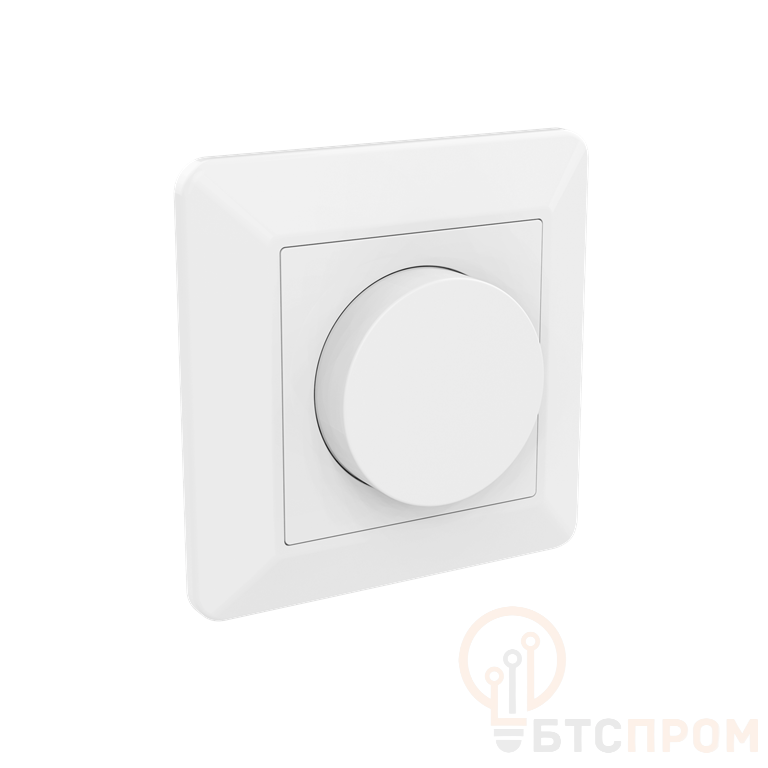 Диммер поворотный для ручной регулировки и выключения. Крышка и поворотный переключатель нейтрального белого цвета. Подходит для подключения 25 светильников.