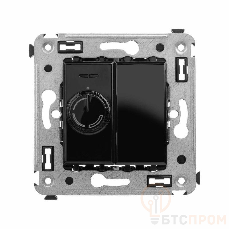 Диммеры предназначены для управления контуром освещения и регулировки интенсивности освещения помещения. Поворотный диммер – это колесико, поворот которого позволяет менять яркость комнатного освещения. Диммеры от ДКС применяется для скрытой установки в стену. Цвет пластиковых частей устройства - "Черный квадрат", это глубокий загадочный оттенок, оттеняющий другие цвета и создающий в интерьере интригующие акценты. Производитель оставляет за собой право вносить во внешний вид изделия изменения, которые не влияют на его функционал, безопасность и надежность.