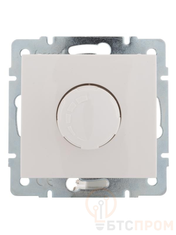 Модель выполнена в классическом белом цвете и предназначена для установки в стандартный монтажный подрозетник. Эргономичная поворотная ручка обеспечивает удобное и точное управление освещением. Основная сфера применения — жилые и офисные помещения для создания комфортной световой атмосферы, зонирования пространства и экономии электроэнергии. Механизм совместим с большинством современных светильников с лампами накаливания и галогенными лампами.
