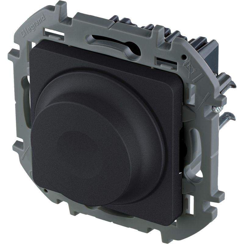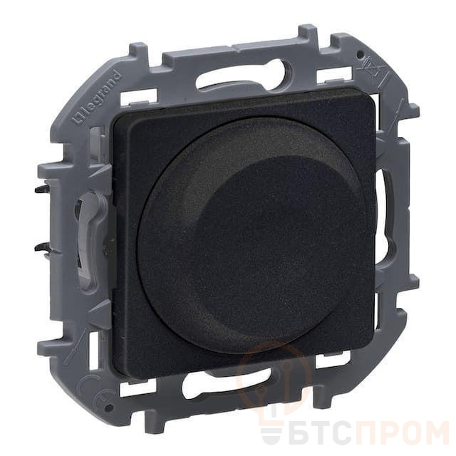 Диммер поворотно-нажимной универсальный для светодиодных и других ламп скрытого монтажа Inspiria, мощность 5-300 Вт лампы накаливания / 5-75 Вт светодиодные лампы, поворотно-нажимной, цвет "Антрацит". Используется для регулирования яркости осветительных приборов и создания комфортной атмосферы в любом помещении.