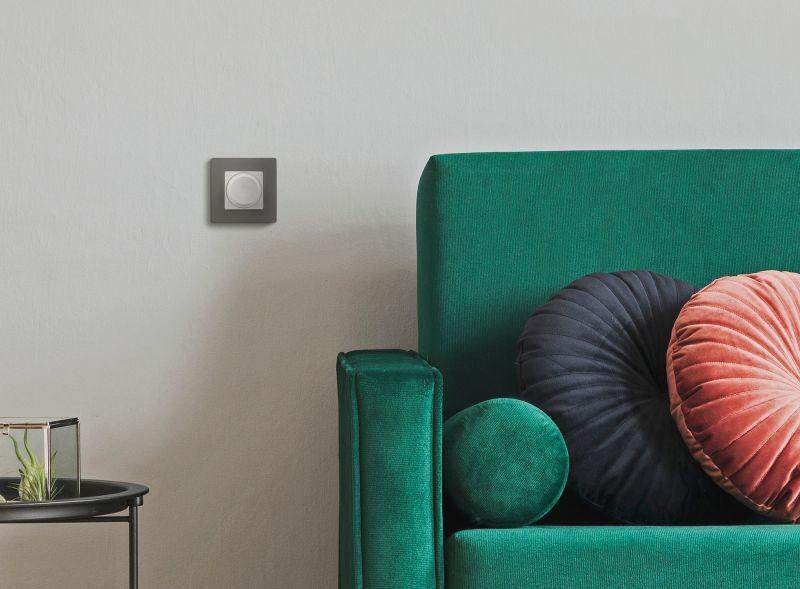Светорегулятор с поворотной ручкой без нейтрали 300 Вт. При включении постепенно (в течение 2 с) устанавливается уровень освещенности, который был перед последним отключением.