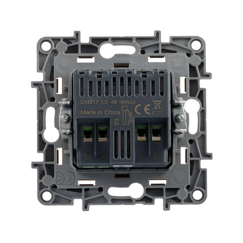 Светорегулятор с поворотной ручкой без нейтрали 300 Вт. При включении постепенно (в течение 2 с) устанавливается уровень освещенности, который был перед последним отключением.