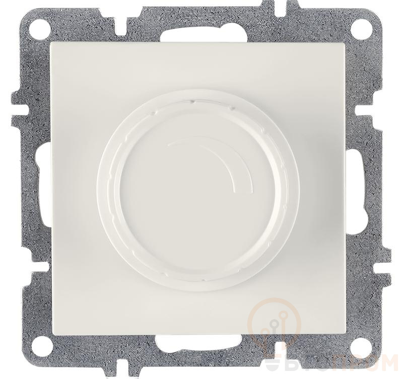 Корпус механизма выполнен в классическом белом цвете, обеспечивая универсальное сочетание с большинством рамок и панелей розеток и выключателей. Поворотная рукоятка гарантирует интуитивно понятное и надежное управление уровнем освещенности.