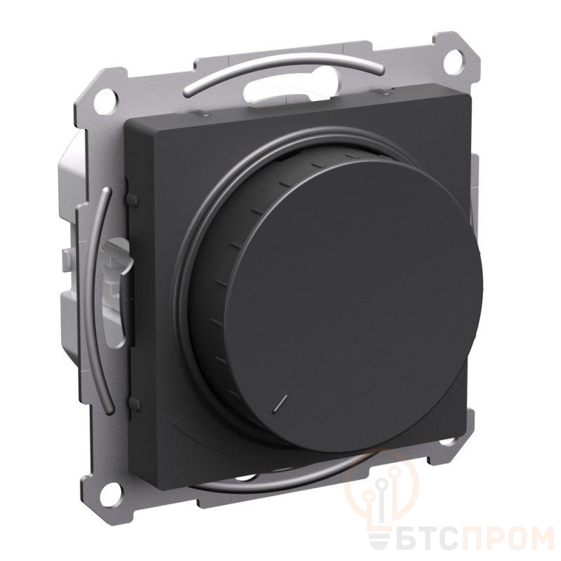 Механизм светорегулятора Systeme Electric (ранее Schneider Electric) серии AtlasDesign (цвет БАЗАЛЬТ) поворотно-нажимной для нагрузки мощностью до 400 Вт, подходит для LED ламп. - Светорегулятор позволяет установить в помещении комфортный уровень освещения. - При подключении второго переключателя диммер может использоваться как проходной переключатель. - Может использоваться как выключатель или переключатель. - Выполнен из материала, стойкого к УФ-излучению и появлению царапин.