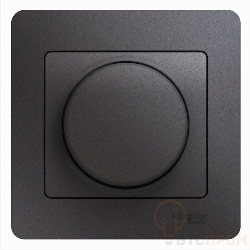 Светорегулятор Systeme Electric (ранее Schneider Electric) серии Glossa (в сборе, цвет графит) поворотный для нагрузки мощностью до 300 Вт. - Светорегулятор позволяет установить в помещении комфортный уровень освещения. - Выполнен из материала PС+ASA, стойкого к УФ-излучению и появлению царапин.