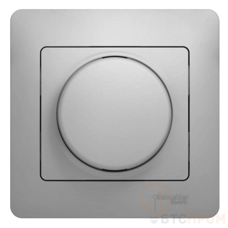 Светорегулятор Schneider Electric Glossa (в сборе, цвет алюминий) поворотный для нагрузки мощностью до 300 Вт. - Светорегулятор позволяет установить в помещении комфортный уровень освещения. - Выполнен из материала PС+ASA, стойкого к УФ-излучению и появлению царапин.