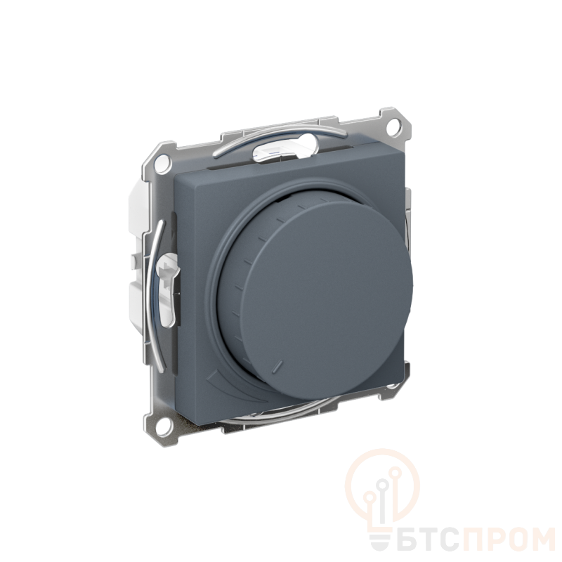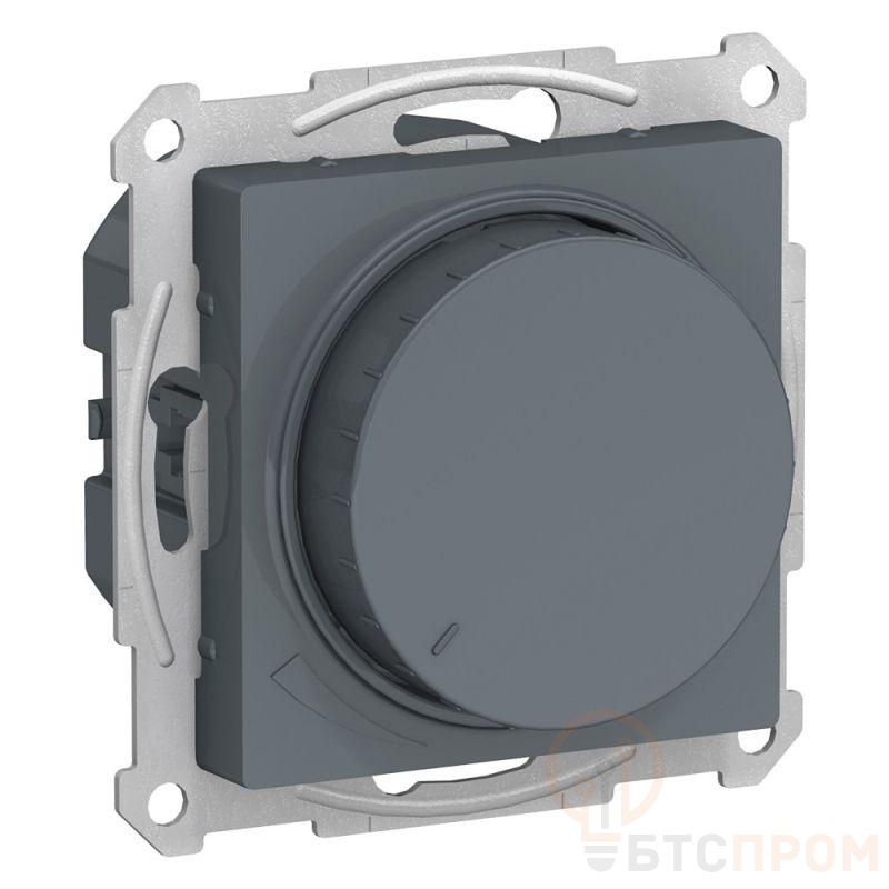Механизм светорегулятора Systeme Electric (ранее Schneider Electric) серии AtlasDesign (цвет грифель) поворотно-нажимной для нагрузки мощностью до 400 Вт, подходит для LED ламп. - Светорегулятор позволяет установить в помещении комфортный уровень освещения. - При подключении второго переключателя диммер может использоваться как проходной переключатель. - Может использоваться как выключатель или переключатель. - Выполнен из материала, стойкого к УФ-излучению и появлению царапин.
