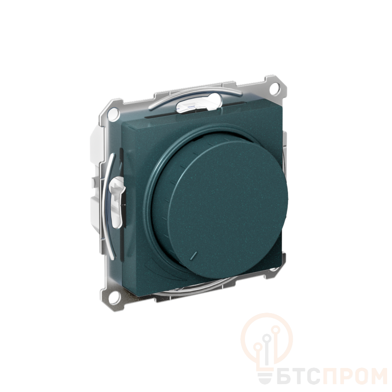 Механизм светорегулятора Systeme Electric (ранее Schneider Electric) серии AtlasDesign (цвет изумруд) поворотно-нажимной для нагрузки мощностью до 400 Вт, подходит для LED ламп. - Светорегулятор позволяет установить в помещении комфортный уровень освещения. - При подключении второго переключателя диммер может использоваться как проходной переключатель. - Может использоваться как выключатель или переключатель. - Выполнен из материала, стойкого к УФ-излучению и появлению царапин.