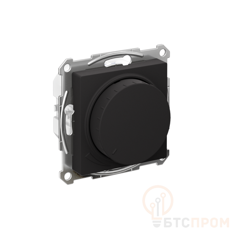 Механизм светорегулятора Systeme Electric (ранее Schneider Electric) серии AtlasDesign (цвет карбон) поворотно-нажимной для нагрузки мощностью до 400 Вт, подходит для LED ламп. - Светорегулятор позволяет установить в помещении комфортный уровень освещения. - При подключении второго переключателя диммер может использоваться как проходной переключатель. - Может использоваться как выключатель или переключатель. - Выполнен из материала, стойкого к УФ-излучению и появлению царапин.