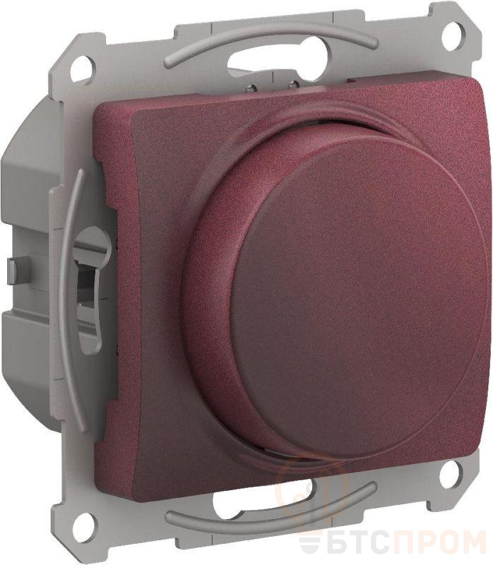 Механизм светорегулятора Systeme Electric (ранее Schneider Electric) серии Glossa (цвет баклажановый) поворотно-нажимной для нагрузки мощностью до 400 Вт, подходит для LED ламп. - Светорегулятор позволяет установить в помещении комфортный уровень освещения. - При подключении второго переключателя диммер может использоваться как проходной переключатель. - Может использоваться как выключатель или переключатель. - Выполнен из материала, стойкого к УФ-излучению и появлению царапин.