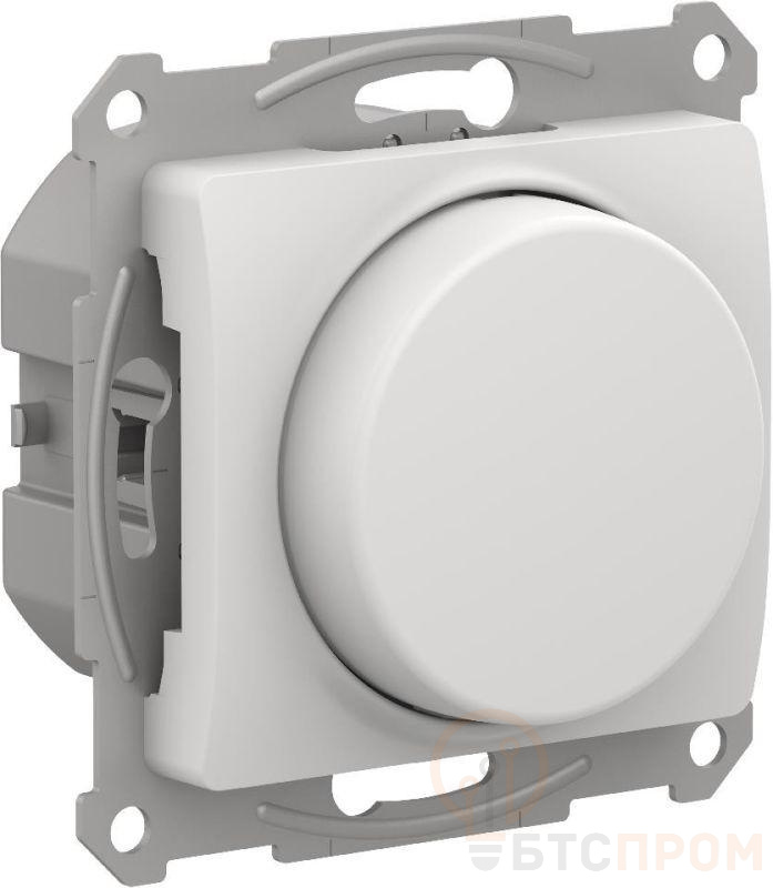 Механизм светорегулятора Systeme Electric серии Glossa (цвет белый) поворотно-нажимной для нагрузки мощностью до 400 Вт, подходит для LED ламп. - Светорегулятор позволяет установить в помещении комфортный уровень освещения. - При подключении второго переключателя диммер может использоваться как проходной переключатель. - Может использоваться как выключатель или переключатель. - Выполнен из материала, стойкого к УФ-излучению и появлению царапин (ранее Schneider Electric GSL000130, GSL000134, GSL000137, MGU5.511.18ZD).