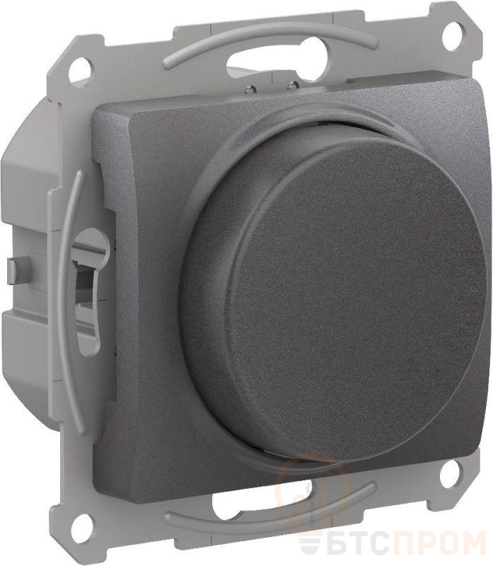 Механизм светорегулятора Systeme Electric (ранее Schneider Electric) серии Glossa (цвет графит) поворотно-нажимной для нагрузки мощностью до 400 Вт, подходит для LED ламп. - Светорегулятор позволяет установить в помещении комфортный уровень освещения. - При подключении второго переключателя диммер может использоваться как проходной переключатель. - Может использоваться как выключатель или переключатель. - Выполнен из материала, стойкого к УФ-излучению и появлению царапин.