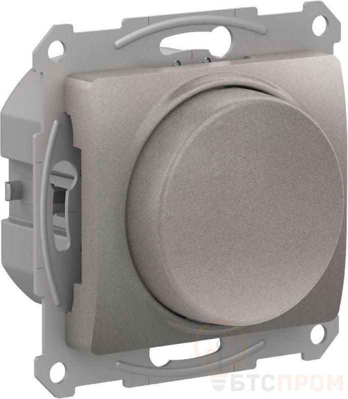 Механизм светорегулятора Systeme Electric (ранее Schneider Electric) серии Glossa (цвет платина) поворотно-нажимной для нагрузки мощностью до 400 Вт, подходит для LED ламп. - Светорегулятор позволяет установить в помещении комфортный уровень освещения. - При подключении второго переключателя диммер может использоваться как проходной переключатель. - Может использоваться как выключатель или переключатель. - Выполнен из материала, стойкого к УФ-излучению и появлению царапин.