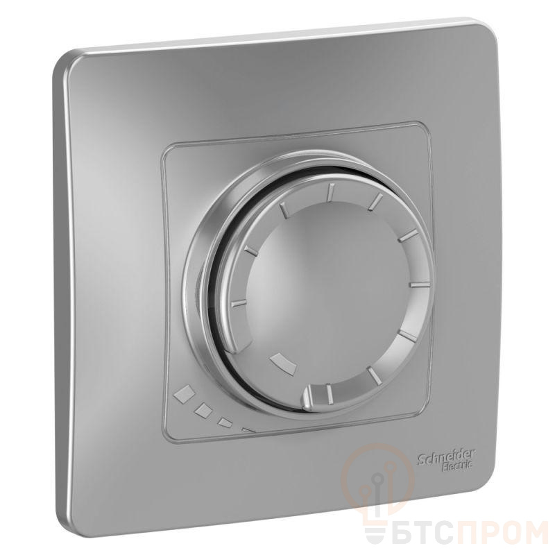 Светорегулятор (диммер) Systeme Electric (ранее Schneider Electric) BLANCA (алюминий, скрытой установки) поворотно-нажимной универсальный предназначен для сетей 230В, потребление 5-150Вт для светодиодных ламп и 10-400Вт для ламп накаливания и галогенных. Диммер изготовлен из ABS-пластика, прост в установке и удобен в применении.
