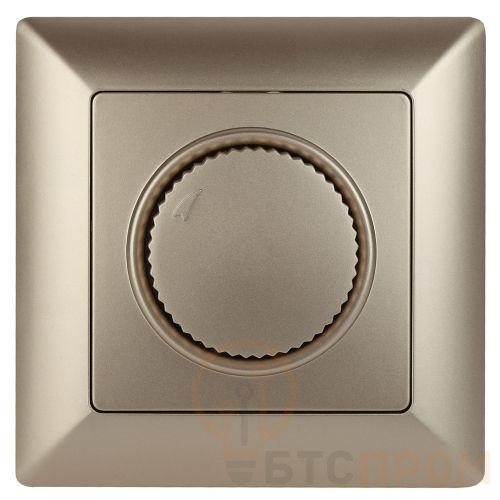 Светорегулятор поворотный серии Intro Solo скрытой установки цвет шампань 4-401-04. Номинальные характеристики 600ВА 230В . Диммер выполнен из негорючего термопласта, укомплектована одноместной рамкой. Для установки 2-х и более устройств в несколько подрозетников в ряд дополнительно используются многоместные рамки: 2-х постовая - 4-502-хх, 3-х постовая 4-503-хх, 4-х постовая - 4-504-хх (где хх - цветовой код: 01 - белый, 02 - слоновая кость, 03 - алюминий, 04 - шампань, 05 - антрацит, 10 - венге, 11 - сосна). Другие устройства серии вы можете найти введя в поиск Intro Solo.
