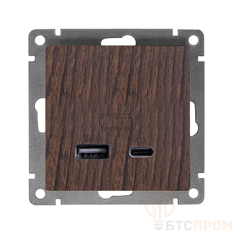 Розетка 2-м USB СП Афина тип А+С 5В 1х2.4А 2х4А механизм венге Universal А0059-V фото в каталоге от BTSprom.by