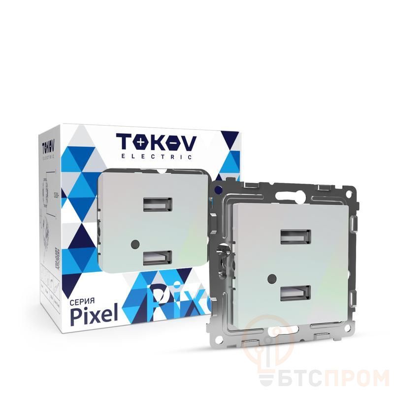 Розетка 2-м USB СП Pixel тип A+A 5В 1х2.1А 2х1.05А механизм перламутр. TOKOV ELECTRIC TKE-PX-2USB-C04