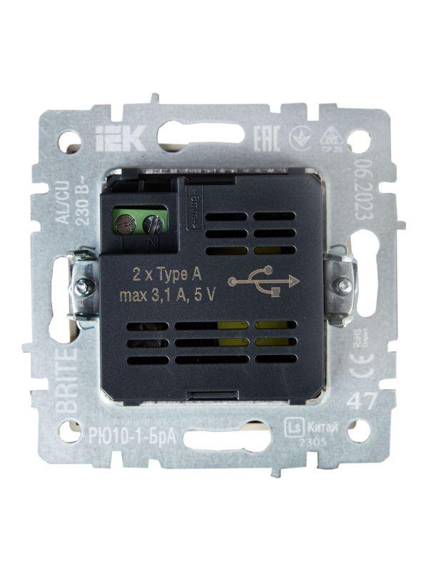–Розетка BRITE USB A+A 3.1А РЮ10-1-БрА механизм алюм. IEK BR-U21-D31-K47