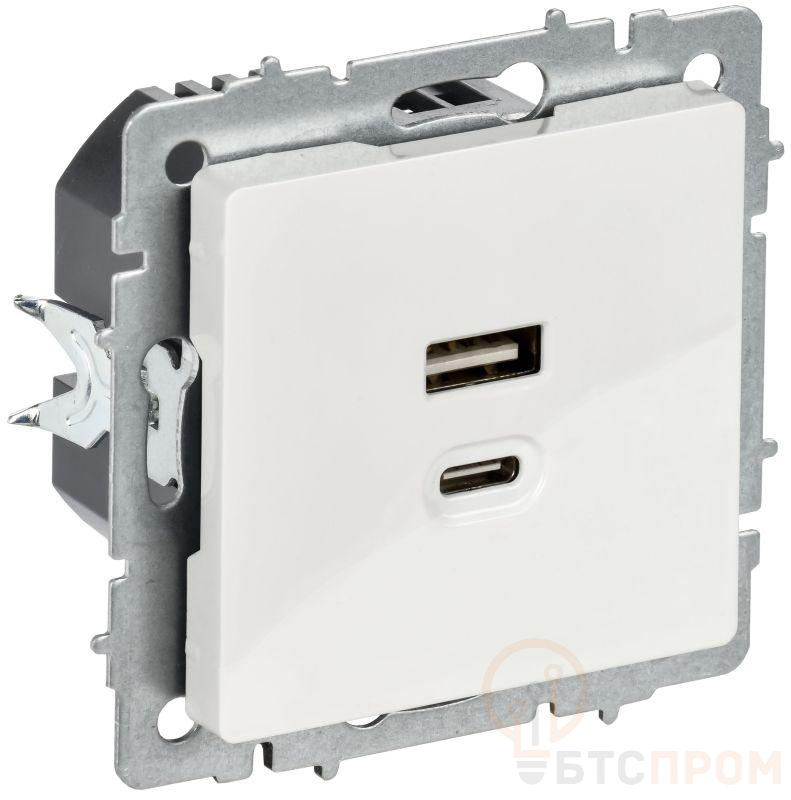 Розетка СП BRITE РЮ11-2-БрБ USB A+C 45Вт высокоскор. заряд. бел. IEK BR-U22-045-K01 фото в каталоге от BTSprom.by