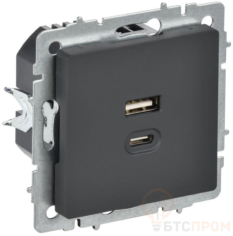 Розетка СП BRITE РЮ11-2-БрГ USB A+C 45Вт высокоскор. заряд. графит IEK BR-U22-045-K53 фото в каталоге от BTSprom.by