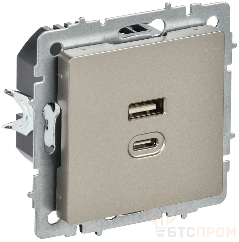 Розетка СП BRITE РЮ11-2-БрШ USB A+C 45Вт высокоскор. заряд. шампань IEK BR-U22-045-K37 фото в каталоге от BTSprom.by