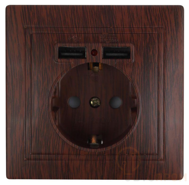 Розетка с USB с заземлением со шторками серии Intro Plano скрытой установки цвет венге 1-410-10. Номинальные характеристики 16А 250В/2,1А 5В . Розетка выполнена из негорючего термопласта, укомплектована одноместной рамкой, оснащена винтовыми клеммами. Клеммы с двумя отверстиями позволяют соединять соседние розетки шлейфом. Установка в подрозетник производится как на монтажные лапки, так и на винты.