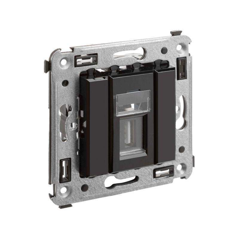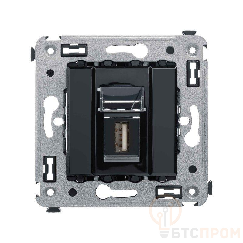USB 2.0 розетка. Назначение: для монтажа в подрозеточные коробки глубиной не менее 45 мм (код 59301). Используется в качестве информационной розетки для передачи сигнала (подключение проекторов, мониторов и др.). Цвет: "Черный квадрат". Производитель оставляет за собой право вносить во внешний вид изделия изменения, которые не влияют на его функционал, безопасность и надежность.
