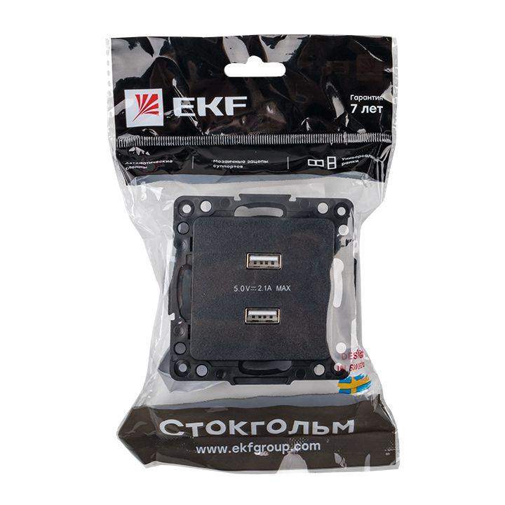 Розетка с 2 USB EKF серии Стокгольм станет отличным решением для квартиры и загородного дома для подключения устройств. USB-разъемы позволяют подлючить мобильные устройства напрямую, без адаптера. Изделие необходимо дополнить рамкой.