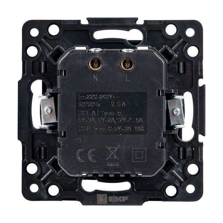Розетка USB 2-м Стокгольм тип A+C механизм черн. PROxima EKF EZR-2USB-type-C фото в каталоге от BTSprom.by