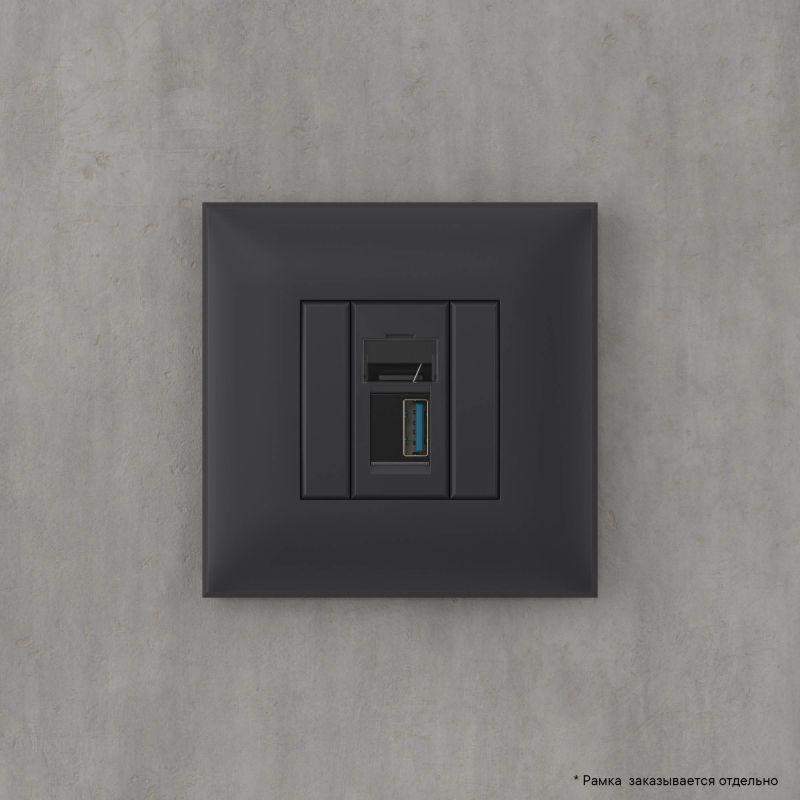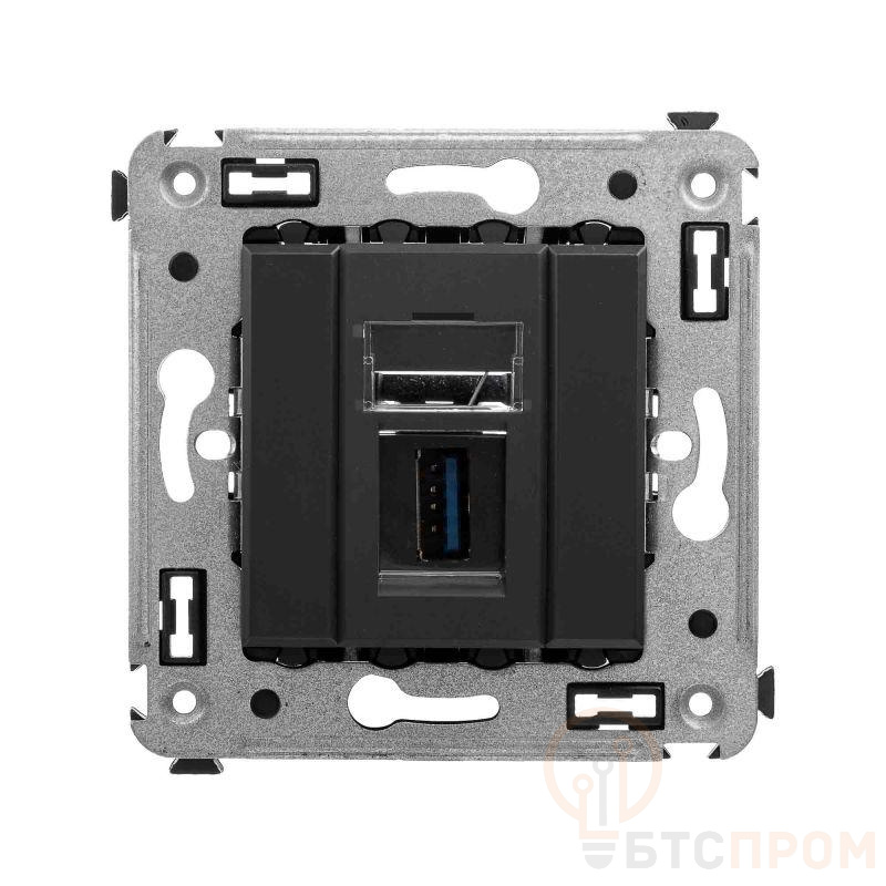 USB 3.0 розетка. Назначение: для монтажа в подрозеточные коробки глубиной не менее 45 мм (код 59301). Используется в качестве информационной розетки для передачи сигнала (подключение проекторов, мониторов и др.). 2 модуля. Цвет: "Черный матовый". Производитель оставляет за собой право вносить во внешний вид изделия изменения, которые не влияют на его функционал, безопасность и надежность.