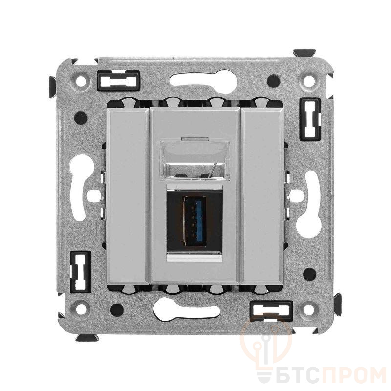 USB 3.0 розетка. Назначение: для монтажа в подрозеточные коробки глубиной не менее 45 мм (код 59301). Используется в качестве информационной розетки для передачи сигнала (подключение проекторов, мониторов и др.). Цвет: "Закаленная сталь". Производитель оставляет за собой право вносить во внешний вид изделия изменения, которые не влияют на его функционал, безопасность и надежность.